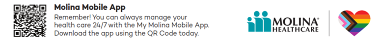 Molina Mobile App Remember! You can always manage your health care 24/7 with the My Molina Mobile App. Download the app using the QR Code today.