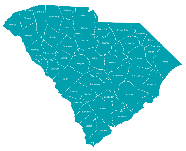 The service areas covered by Molina Medicare in the state of South Carolina are: